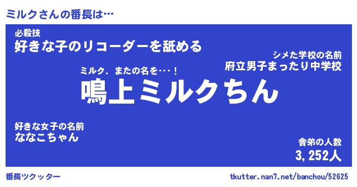 | 肩書あだ名 | 『ミルク店長』『ミルク国家主席』 |