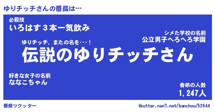 | ヘコむあだ名 | 『ゆりにゅー』『なまこ酢』 |