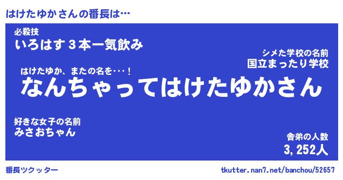 | 伝説のあだ名 | 『伝説のスナイパーはけたゆか』 |