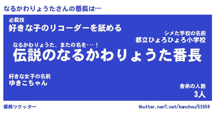 | 伝説のあだ名 | 『伝説のスナイパーなるかわりょうた』 |