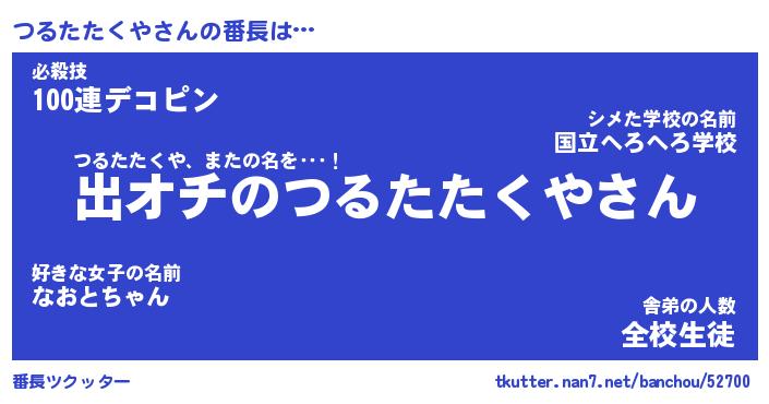 | ピコ太郎風あだ名 | 『ツコ太郎』『ピツ四郎』『ツル二郎』 |