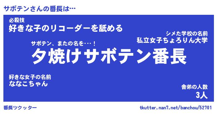 | ヒーロー風カッコイイあだ名 | 『スーパーサボテン』『魔戒騎士サボ』 |