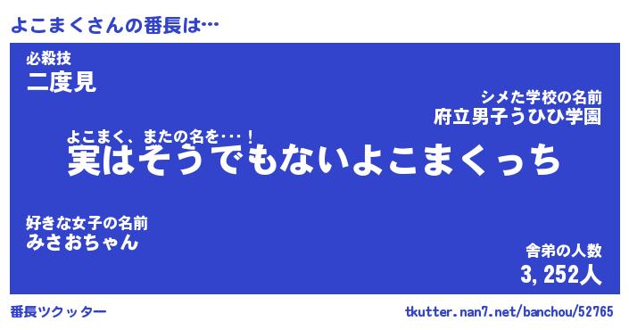 | ヘコむあだ名 | 『よこにゅー』『酢こんぶ』 |