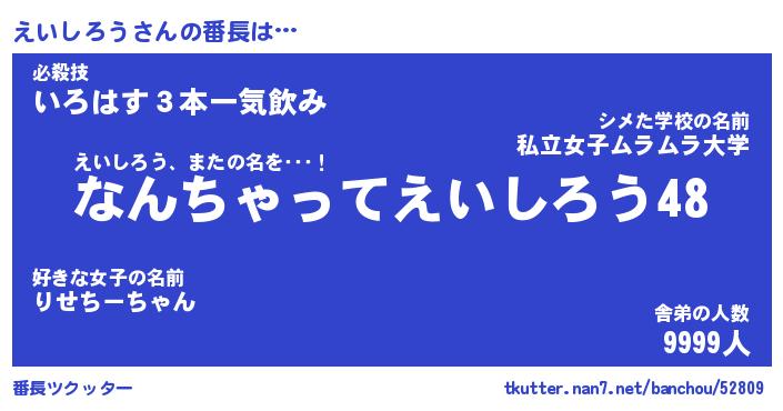 | 肩書あだ名 | 『えいしろう社長』『えいしろう大統領』 |