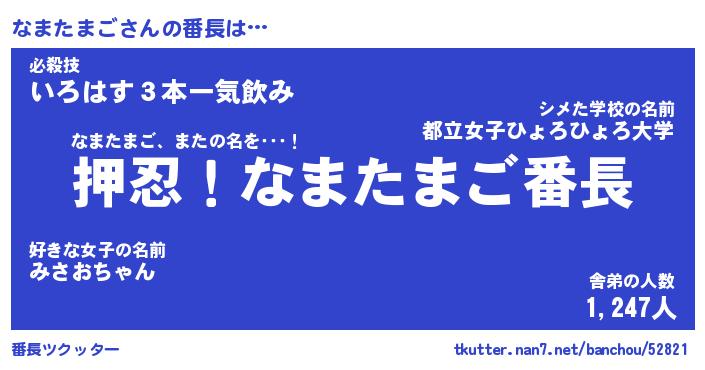 | ヒーロー風カッコイイあだ名 | 『スーパーナマタマゴ』『銀牙騎士ナマ』 |