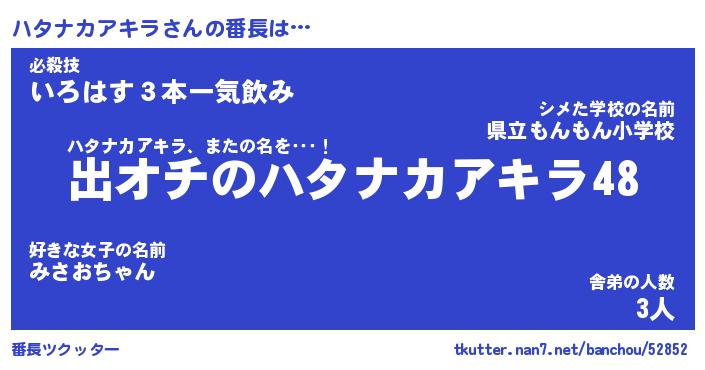 | 肩書あだ名 | 『ハタナカアキラ御曹司』 |