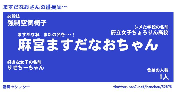 | 肩書あだ名 | 『ますだなお社長令嬢』『ますだなお教頭』 |