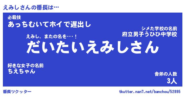 | 肩書あだ名 | 『えみし社長』『えみし大統領』 |