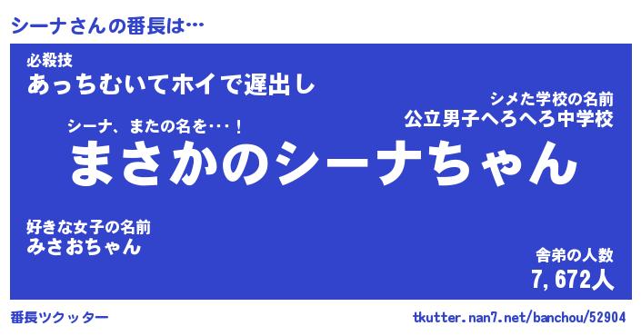 | ヒーロー風カッコイイあだ名 | 『スーパーシーナ』『ウルトラシーナマン』 |