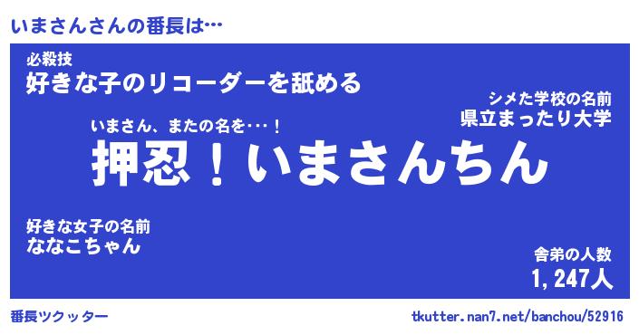 | 肩書あだ名 | 『いまさんCEO』『いまさん国家主席』 |