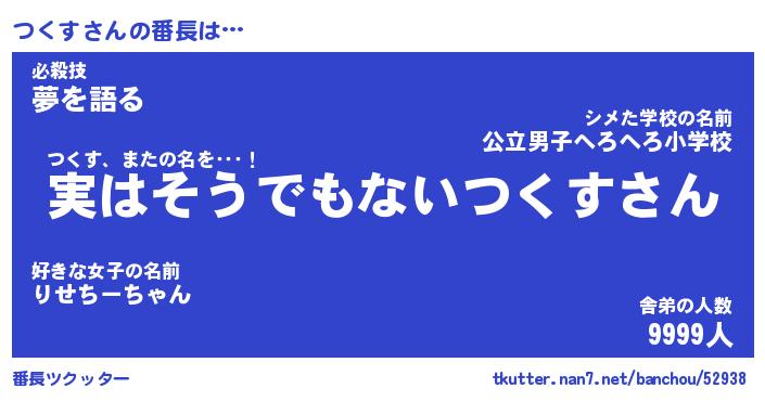 | 意味不明あだ名 | 『ペロリンつくす』『つくすフォーエバー』 |