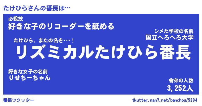 | 伝説のあだ名 | 『伝説のスナイパーたけひら』 |
