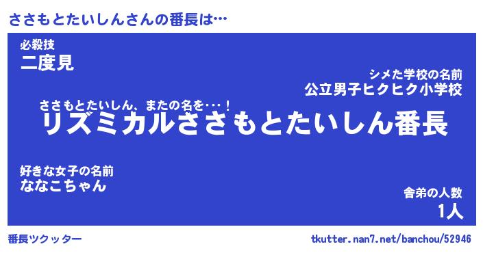 | ヒーロー風カッコイイあだ名 | 『スーパーササモトタイシン』 |