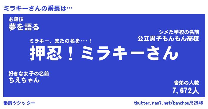 | ヒーロー風カッコイイあだ名 | 『スーパーミラキー』『銀牙騎士ミラ』 |