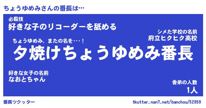 | 肩書あだ名 | 『ちょうゆめみ店長』『ちょうゆめみ班長』 |