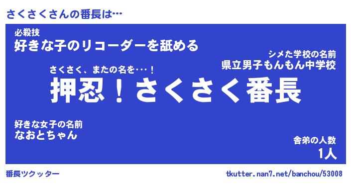 | 意味不明あだ名 | 『ペロリンさくさく』『永久保存さくさく』 |