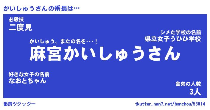| ヒーロー風カッコイイあだ名 | 『スーパーカイシュウ』『魔戒騎士カイ』 |