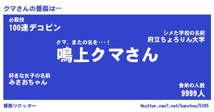 | ポケモン風あだ名 | 『クマチュウ』『クマダネ』『ヒクマ』 |