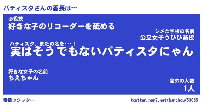 | ファンタジー風あだ名 | 『バテフェル』『エターナルバティスター』 |