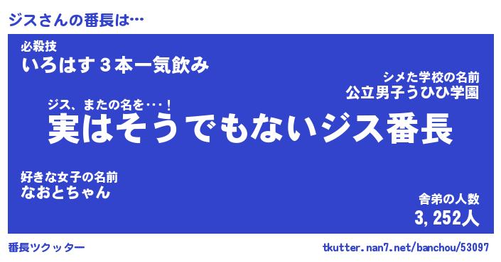 | 2回繰り返すあだ名 | 『ジスジス』『ジジスス』『ぬめぬめ』 |