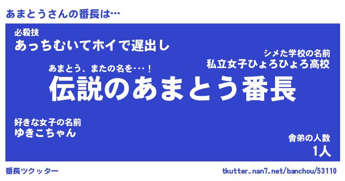 | 肩書あだ名 | 『あまとう御曹司』『あまとう国家主席』 |