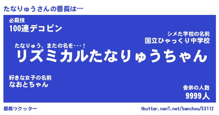 | 伝説のあだ名 | 『伝説のスナイパーたなりゅう』 |