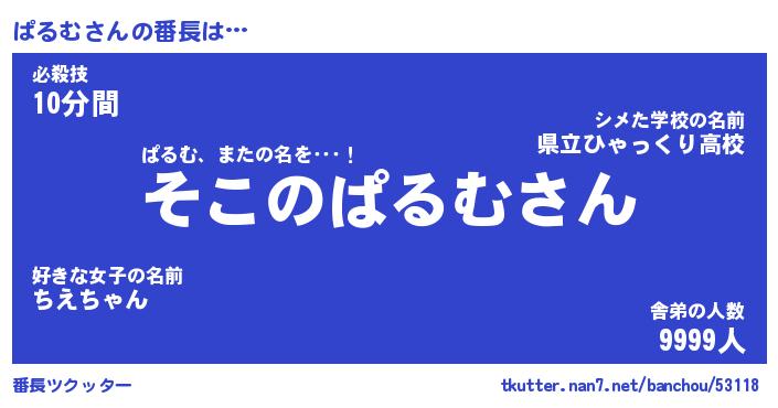 | 意味不明あだ名 | 『ペロリンぱるむ』『ぱるむフォーエバー』 |