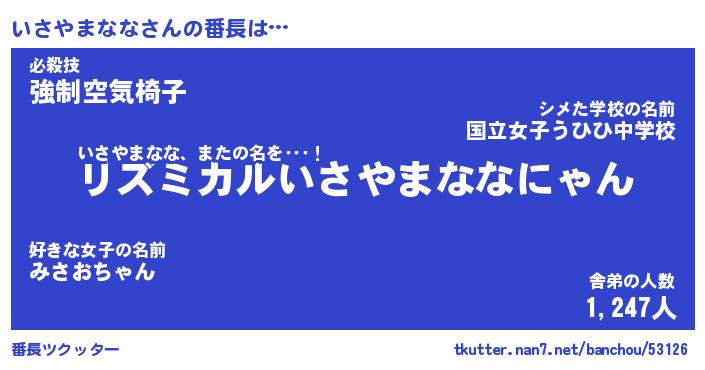 | 肩書あだ名 | 『いさやまなな社長』『いさやまなな班長』 |