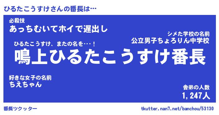 | ヒーロー風カッコイイあだ名 | 『スーパーヒルタコウスケ』 |