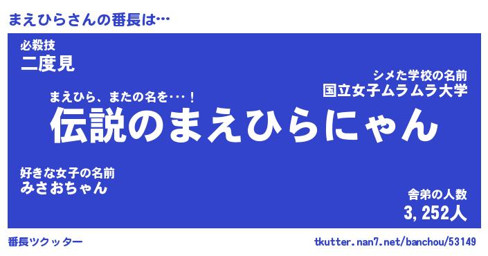 | 意味不明あだ名 | 『ペロリンまえひら』『永久保存まえひら』 |