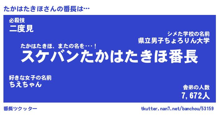 | 肩書あだ名 | 『たかはたきほ社長』『たかはたきほ班長』 |