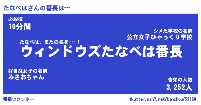| 2回繰り返すあだ名 | 『たなたな』『たたなな』『ぶらぶら』 |