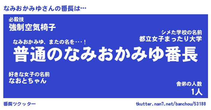 肩書あだ名 | 『なみおかみゆ社長』『なみおかみゆ団長』 |