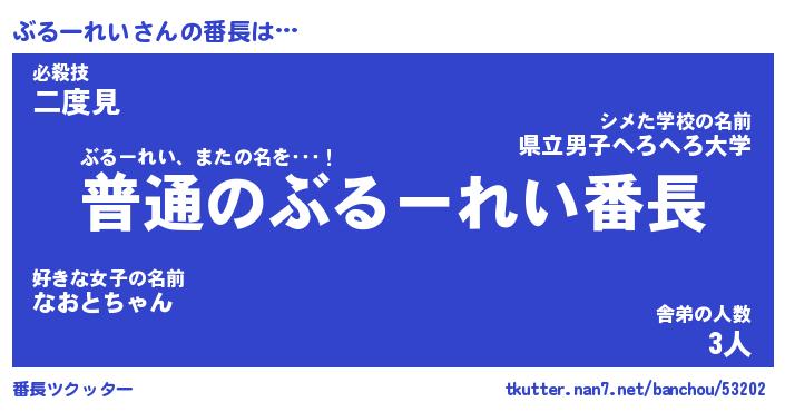 | 男性向けラノベタイトル風あだ名 | 『ぶるーれいの憂鬱』 |
