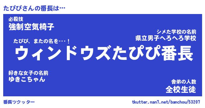 | 伝説のあだ名 | 『伝説のスナイパーたぴぴ』 |