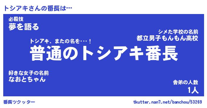 | 意味不明あだ名 | 『ペロリントシアキ』『永久保存トシアキ』 |