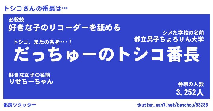| 意味不明あだ名 | 『ペロリントシコ』『トシコフォーエバー』 |