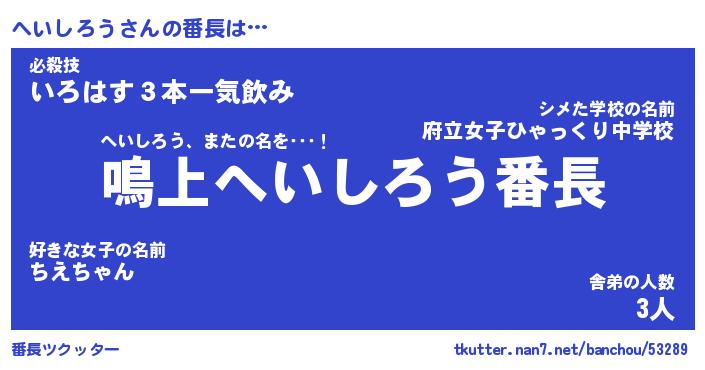 | 意味不明あだ名 | 『ペロリンへいしろう』 |