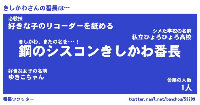 | 意味不明あだ名 | 『ペロリンきしかわ』『永久保存きしかわ』 |