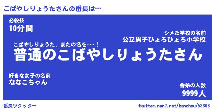 | 2回繰り返すあだ名 | 『こばこば』『ここばば』『ぐうぐう』 |