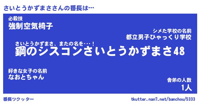 | 肩書あだ名 | 『さいとうかずまさ御曹司』 |