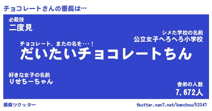 | ヒーロー風カッコイイあだ名 | 『スーパーチョコレート』『炎刃騎士チョ』 |