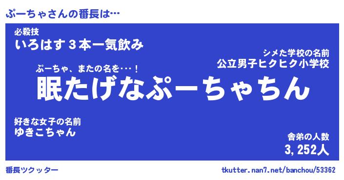 | 意味不明あだ名 | 『ペロリンぷーちゃ』『永久保存ぷーちゃ』 |