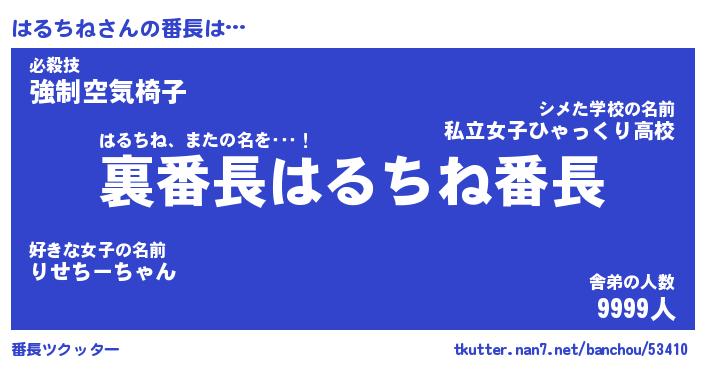 | 伝説のあだ名 | 『不死鳥のスナイパーはるちね』 |