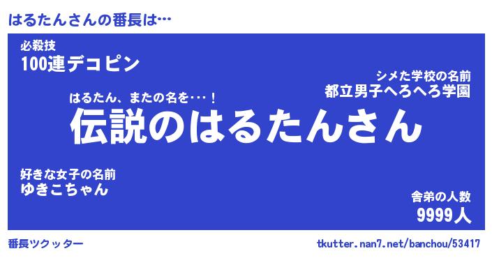 | ファンタジー風あだ名 | 『ハルフェル』『エターナルハルタンー』 |