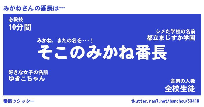 | ヒーロー風カッコイイあだ名 | 『スーパーミカネ』『ウルトラみかねマン』 |
