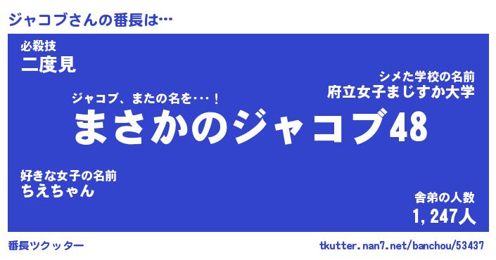 | 意味不明あだ名 | 『ペロリンジャコブ』『永久保存ジャコブ』 |