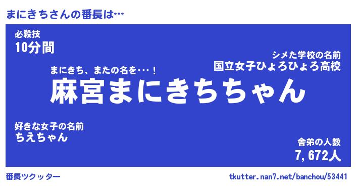 | 意味不明あだ名 | 『ペロリンまにきち』『永久保存まにきち』 |