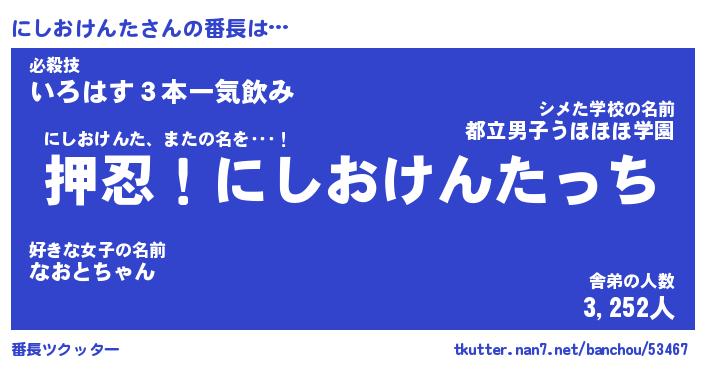 | 肩書あだ名 | 『にしおけんた御曹司』 |