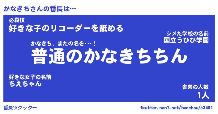 | 意味不明あだ名 | 『ペロリンかなきち』『永久保存かなきち』 |